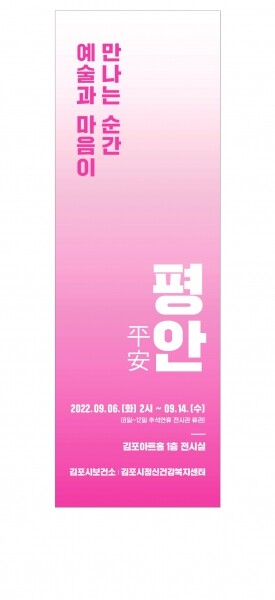 예술과 마음이 만나는 순간 “평안”은 정신건강에 대한 인식개선 및 사회적 관심 제고와 시민의 마음건강 증진을 위한 행사로 9월 6일부터 9월 14일까지 김포아트홀 1층 전시실에서 진행한다.
