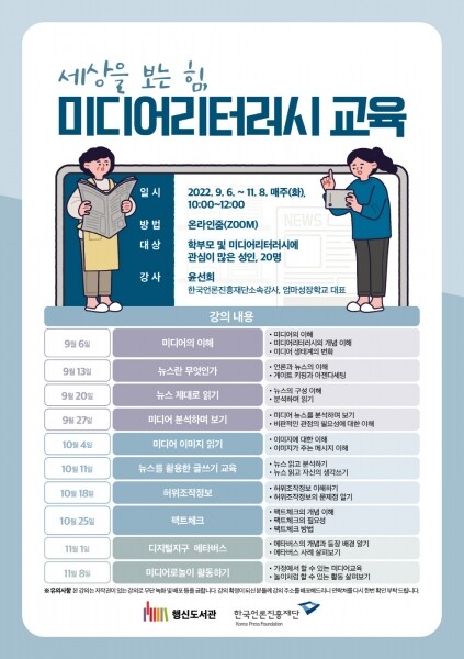 행신도서관 담당자는 “한국언론진흥재단의 지원을 받아 시행하는 미디어리터러시 교육으로 시민 여러분이 미디어에 대한 비판적 이해 능력을 강화하는 기회를 제공할 것”이라고 말했다.