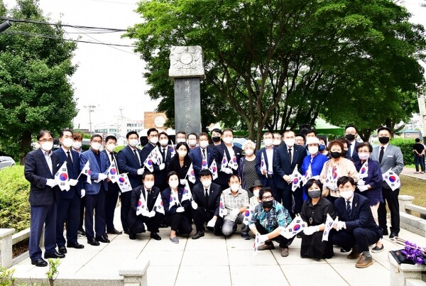 이날 참배는 김경일 파주시장과 박정 국회의원, 이건영 광복회 파주시지회장 및 광복회원, 도의원, 시의원 등 30여명의 최소 인원만 참석한 가운데 순국선열과 호국영령에 대한 묵념, 헌화 및 분향, 만세삼창 순으로 진행됐다.