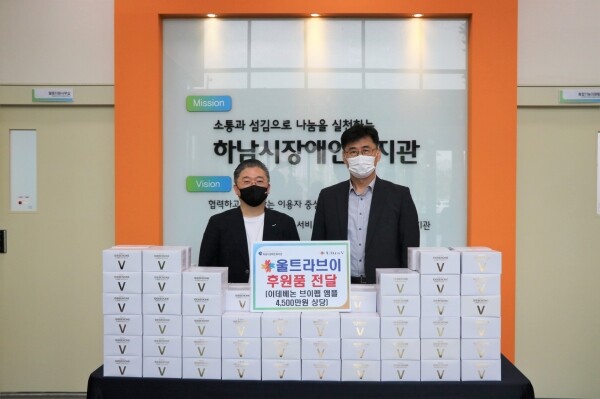 특허 받은 독자적인 기술력과 다년간 임상실험을 통한 연구 성과 및 노하우를 바탕으로 K-Beauty 시장을 개척, 선도해 가고 있다이번에 후원한 이데베논 앰플의 경우 울트라브이의 대표적인 시그니처 제품으로 노화예방, 주름, 탄력, 미백, 피부결 등 5가지 주요 피부 개선에 우수한 제품으로 지역사회 장애인 및 장애인 단체에 전달할 예정이다.