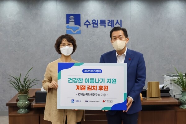수원시는 KMI가 전달한 포기김치를 건강취약가정 1364가구에 5㎏씩 전달할 예정이다.