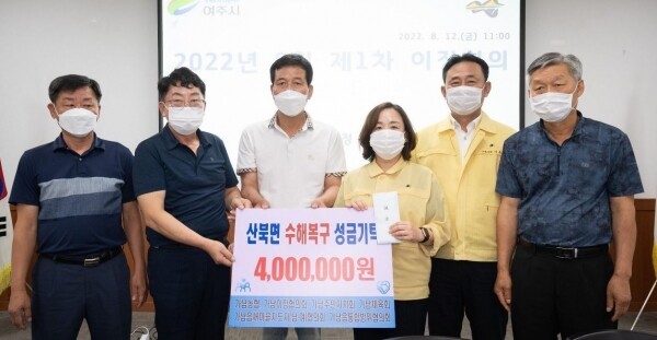 이복환 가남읍장은 “갑작스러운 폭우로 인해 어려움을 겪고 있는 산북면 주민들에게 작은 위로가 되길 바란다”며 “아픔을 딛고 다시 일어날 수 있는 힘이 되길 희망한다”고 전했다.