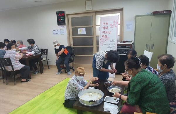 만들어가는 쉼터는 관내 경로당 어르신들을 대상으로 웃음치료와 찐빵/찰떡 만들기 체험으로 구성돼, 활력 회복을 위한 프로그램으로 진행된다.