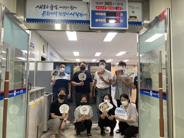 김학재 문화체육관광과장은 “청렴 부채를 꾸미면서 부패, 갑질, 무사안일식 근무태도를 더위와 함께 날리자는 다짐을 하기 위해 기획했다”며 “청렴부채를 통해 각자의 마음에 청렴의 바람을 느끼며 다가오는 가을을 맞이해 더욱더 청렴 의식을 확고히 해 공직자의 청렴 자세를 항상 마음에 새기겠다”고 밝혔다.