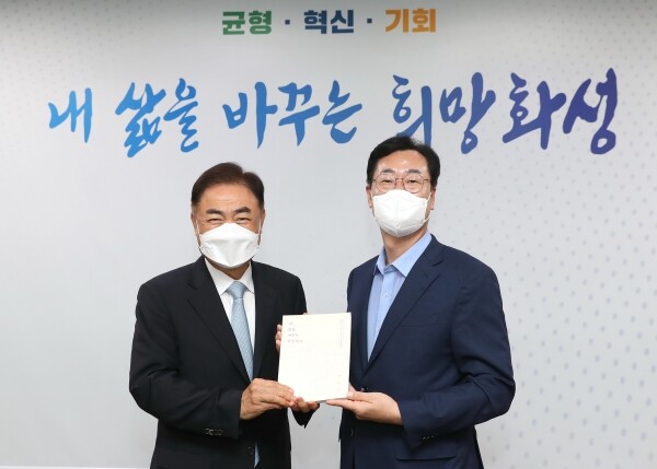 백서 전달식은 시청 접견실에서 열려 정명근 화성시장과 박철수 인수위원장, 이강석 부위원장 등이 참석했다.