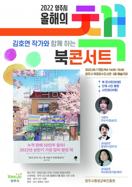 북콘서트에 참여를 희망하는 시민은 양주시도서관 홈페이지에서 선착순으로 사전신청을 하면 된다.