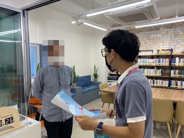 이번 활동은 취업 공부 또는 자격증 취득에 필요한 도서 대출을 위해 도서관에 방문하는 제도권 밖 틈새계층을 발굴하기 위해 중앙동 행정복지센터 맞춤형복지팀 직원들이 관내에 소재한 어수정 작은도서관에 출장해 복지사각지대 발굴 관련 업무 협의를 실시하고 위기가구 발굴 포스터 부착과 전화번호 스티커 비치를 요청했다.