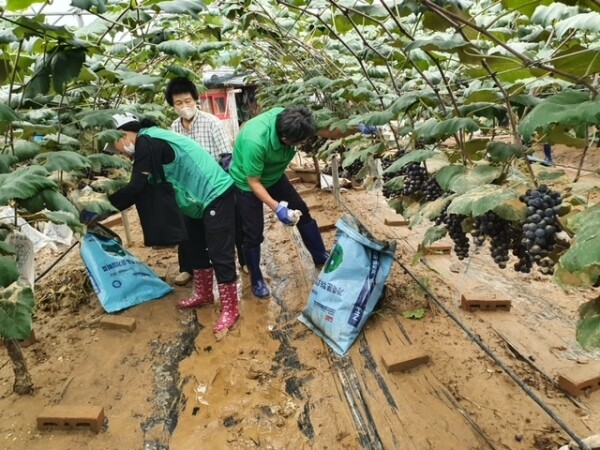 안산시 새마을지도자협의회는 대부도에 위치한 포도 농가를 찾아 비닐하우스 정리와 포도 포장봉지 새로 입히기 등의 봉사활동을 펼치며 구슬땀을 흘렸다.