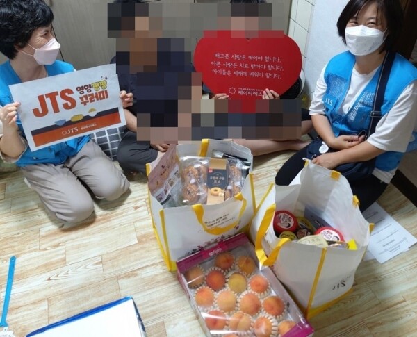 이번 행사는 국제구호단체 한국JTS 회원들이 과일 즉석식품, 통조림 등 영양꾸러미 4세트를 직접 포장하고 복지사각지대 4가구에게 물품전달과 안부 확인을 했다.