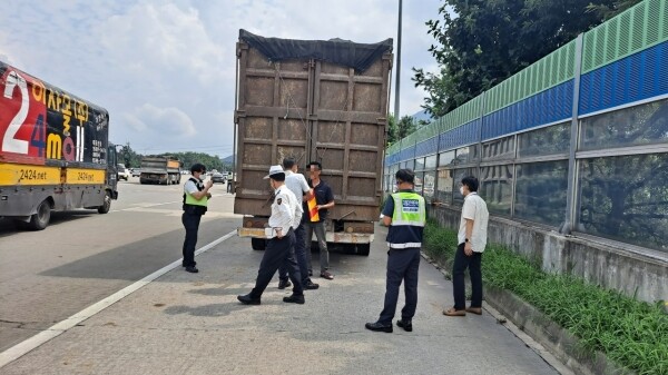 이날 합동 단속팀은 수도권 제1순환고속도로 양주톨게이트에서 의정부 방면으로 진출하는 진출입로에서 화물자동차를 대상으로 적재함에 판스프링 설치 여부, 화물차 난간대 불법 구조 변경, 미인증 등화장치 임의 설치 등을 단속했다.