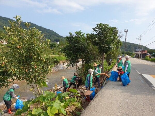 이날 협의회 회원들은 성덕리 고개부터 왕창리 회전교차로 구간까지 복구작업을 실시해 총 5톤에 달하는 시설물 잔해와 쓰레기를 수거했다.