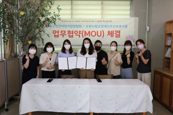 금가현 원장은 “이번 협약을 통해 영통구 지역의 장애인식 문화가 정착하고 유기적인 관계를 통해 어린이집 아이들도 바른 발달 성장에 도움이 될 것으로 기대 한다”고 전했다.