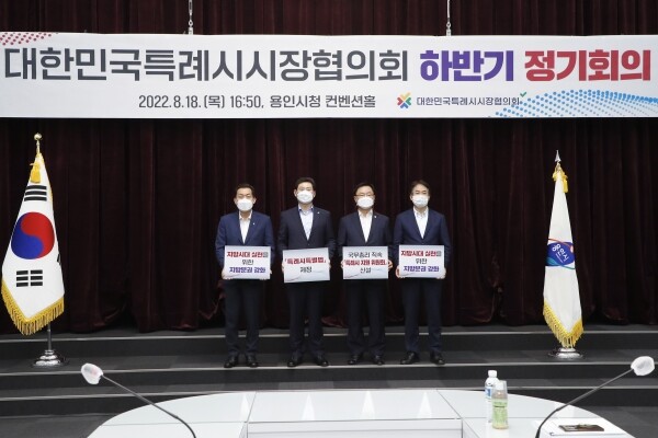 18일 오후, 용인시청 컨벤션홀에서 4개 특례시 시장으로 구성된 대한민국특례시시장협의회는 ‘2022 하반기 정기회의’를 개최했다.
