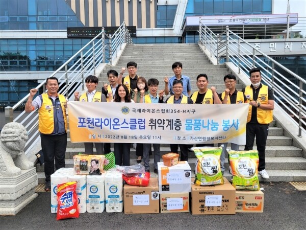 이진희 가산면장은 “이순왕 회장님을 비롯한 포천라이온스 회원분들이 지역사회의 어려운 이웃을 위해 직접 방문해 이웃돕기 물품을 지원해주셔서 감사드린다 기탁하신 물품은 소중히 전달하겠다”고 말했다.