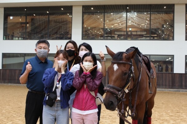 이날 오전에는 화성시 승마클럽에서 기승활동과 마사투어 프로그램을 진행하고 오후에는 평택시에 위치한 브리디팜에서 말 먹이주기 등 교감활동으로 체험을 마무리했다.