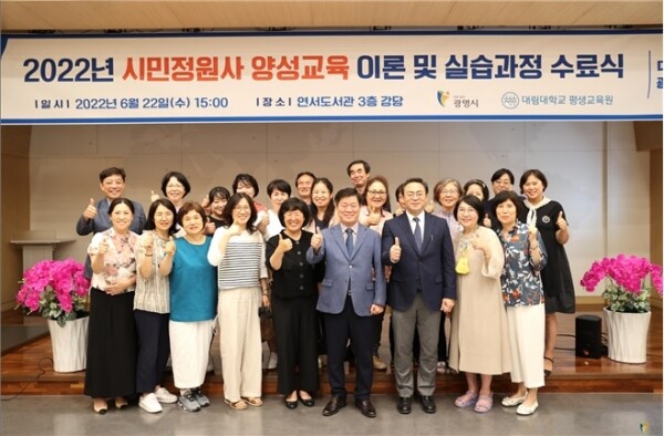 박승원 광명시장은 “시민정원사 양성교육을 통해 시민들이 일상 속에서 식물과 정원에 더욱 가까워지고 배움의 즐거움을 느꼈으면 좋겠다”며 “앞으로 시민정원사들과 함께 어디서든 문을 열면 정원이 보일 수 있는 정원문화도시를 만들어 가겠다”한편 광명시는 일상 속 정원문화 확산과 시민의 녹화의식 함양을 위해 시민정원사 양성 교육을 진행하고 있다.