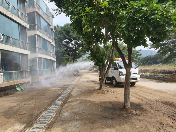 군 보건소는 방역기동반을 2인 1조 3개 반을 편성해 침수 피해지역 및 임시주거시설인 마을회관 등을 방문해 감염병 차단 방역소독을 추진 중으로 마을회관 5개소에는 손소독제, 살균제, KF94 마스크, 살충제 등 방역물품을 배부하고 읍.면사무소에 살균제 및 기피제 등을 배부, 필요한 주민들이 사용할 수 있도록 조치했다.