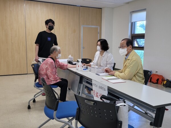 혈압, 당뇨 등 기본적인 건강 체크는 물론 임시 거주시설에서 지내며 아픈 곳은 없는지 등의 상담을 이어갔다.