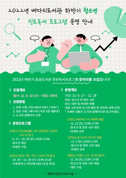 이 프로그램은 관내 청소년들의 진로 선택을 돕고 도서관의 자원을 활용해 청소년의 자발적인 진로 탐색에 도움을 주고자 기획됐다.