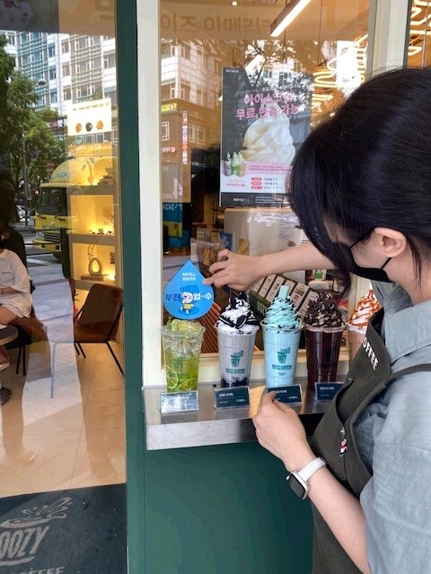 시민 누구나 ‘부천 얼~수’ 스티커가 부착된 매장에서 텀블러나 개인 컵에 식수를 무료로 받을 수 있다.