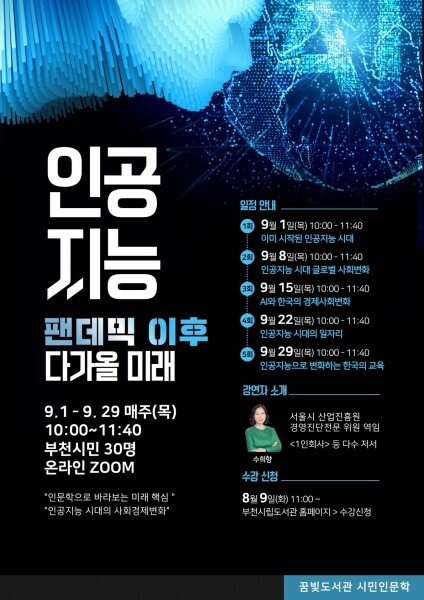 이번 꿈빛도서관 시민인문학 프로그램은 인문학을 통해 인공지능이 주도할 미래사회를 조망하고자 기획됐다.