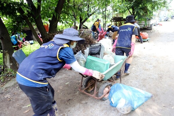 지난 18일에는 ‘노사 한마음 봉사단’이 안산시 상록구 팔곡일동 일대에서 수해 지역 긴급 복구 봉사활동에 함께했다.