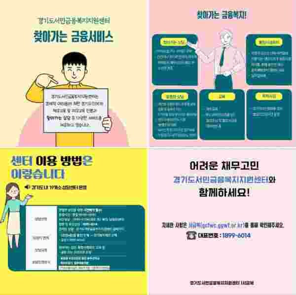2015년부터 진행된 경기도 서민금융복지지원센터의 ‘찾아가는 채무상담’은 센터 방문이 어려운 사회·경제적 위기 도민을 대상으로 신용회복, 개인회생, 파산 등 채무조정 상담 가계 재무수지 개선을 위한 맞춤형 재무상담 대부업체 불법추심 대응 상담 극저신용대출을 비롯한 소액금융 연계 가능한 복지혜택 정보 제공과 연계 등을 지원하고 있다.