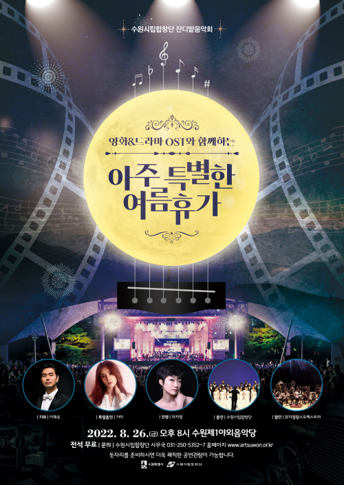 수원시와 수원시립합창단은 26일 오후 8시 팔달구 수원제1야외음악당에서 ‘2022년 수원시립합창단 잔디밭 음악회-영화&드라마 OST와 함께하는 아주 특별한 여름휴가’를 연다.