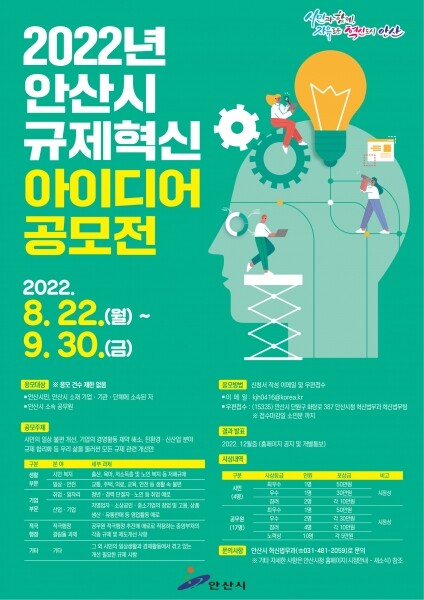 접수기간은 8월 22일부터 9월 30일까지이며 안산시민이거나 안산시 소재 기업·기관·단체에 소속된 사람이라면 누구나 참여 가능하다.