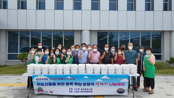 장지봉 소요동장은 “바쁘신 중에도 삼계탕 나눔 봉사를 위해 애써 주신 부녀회원님들과 나눔 활동에 적극적으로 동참해주시는 사회단체장과 위원님들께 진심으로 감사의 말씀을 드리며 더위와 수해로 지친 소요동 주민분들이 소중한 정성과 마음이 담긴 삼계탕을 드시고 건강하게 여름을 보내시길 바란다”고 전했다.