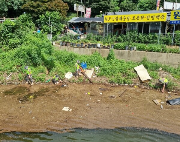 이날 환경정화 활동에는 전우회 회원 30여명이 참여해 수중에 유입된 부유물과 쓰레기, 침수된 폐목재류 등 각종 쓰레기와 오염물질 수거하고 수변 환경 정화활동도 동시에 진행했다.