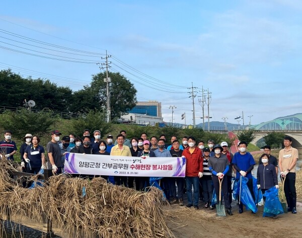 전진선 군수를 비롯해 김영태 부군수, 국·소장, 부서장 등 간부 공무원 30여명은 양강섬과 물맑은양평시장을 잇는 세곡선길 일원에서 쓰레기 수거 등 하천 정화 활동을 진행하며 구슬땀을 흘렸다.