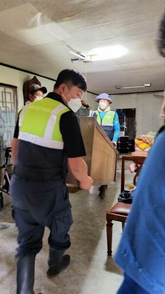 방범대 회원들은 휴일임에도 불구하고 지평면 송현리 침수피해 가구 복구를 위해 파손된 물품정리 및 세척 등 수해복구 작업에 구슬땀을 흘렸다.