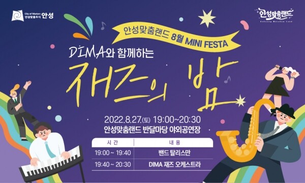 MINI FESTA의 일환으로 열릴 이번 행사에는 DIMA 재즈 오케스트라와 밴드 탈리스만이 출연해 안성맞춤랜드를 찾는 시민들에게 감미로운 재즈 연주를 선보일 예정이다.