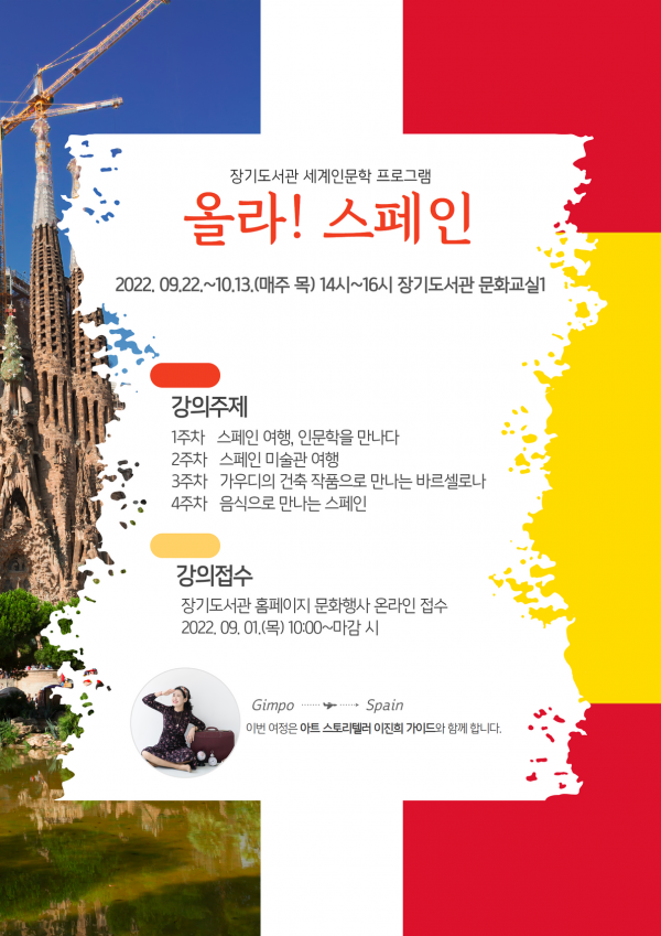 이번 프로그램은 ‘90일 밤의 미술관’의 저자 중 한 명인 이진희 스토리텔러와 함께 하며 역사와 문화, 음식 등을 통해 스페인을 살펴보는 시간을 가진다.