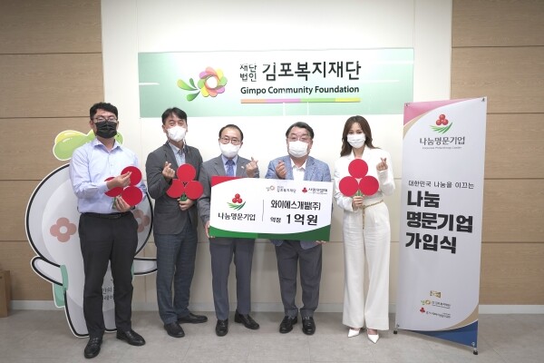 이날 가입식에는 이병우 김포복지재단 대표이사와 안혜경 홍보대사, 경기사회복지공동모금회 이범열 팀장 등이 참석했으며 심철영 와이에스개발 대표이사가 나눔명문기업 인증패를 전달받았다.