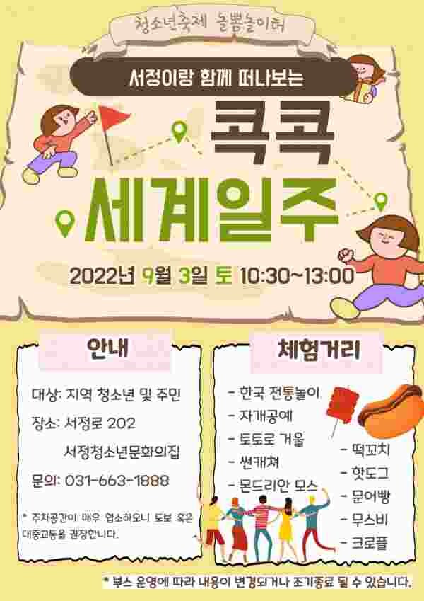 서정청소년문화의집 최중호 관장은 “이번 축제는 청소년운영위원회 이끄미단과 연합동아리의 의견을 반영해 세계여행을 주제로 청소년들이 기획했다”며 “청소년운영위원회를 포함한 연합동아리 청소년들이 열심히 준비한 만큼 지역 청소년들이 재밌고 유익한 시간이 되길 바란다”고 전했다.