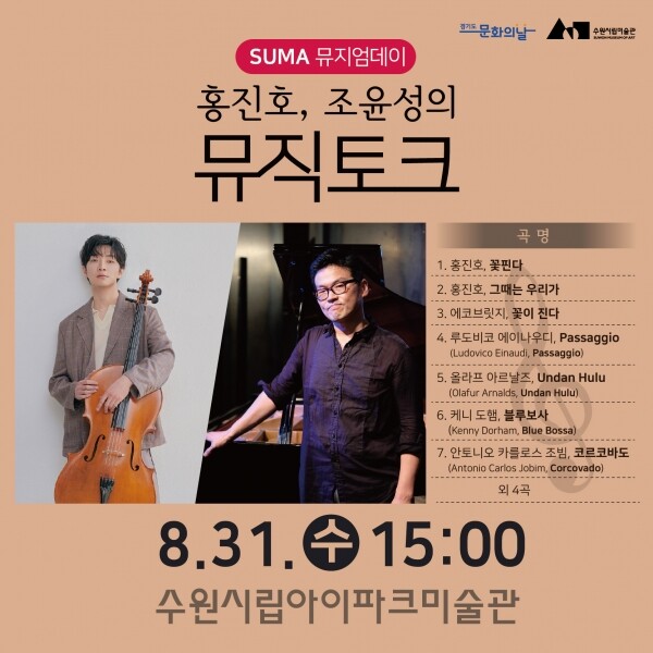 SUMA 뮤지엄데이 ‘홍진호, 조윤성의 뮤직토크’는 경기도민의 문화향유권을 높이기 위한 ‘경기도 문화의 날’문화예술지원프로그램 공모에 선정돼 추진되는 사업이다.