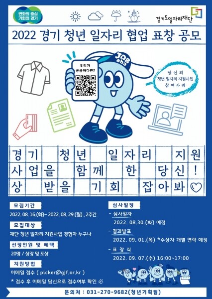 이번 공모는 청년 일자리 지원사업 우수 공로자를 선정·포상해 청년 당사자의 사기진작과 자긍심 고취로 청년 참여를 독려하고자 하는 취지다.