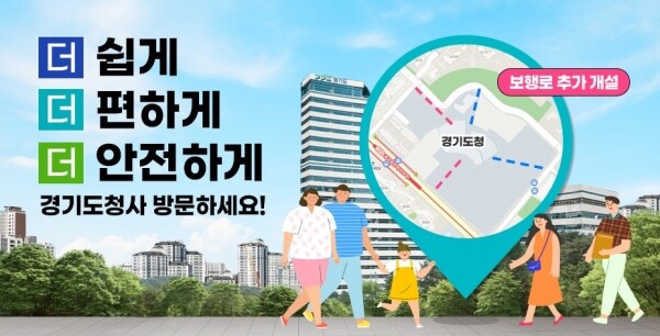추가 통로는 수원 영통구 센트럴타운로를 이용해 도청사로 접근하는 방문객을 위한 것으로 서측 지하 1층 직원 전용 출입구 방면으로 보행통로를 추가 개설해 지상 1층 열린민원실로 계단을 통해 이용할 수 있도록 했다.