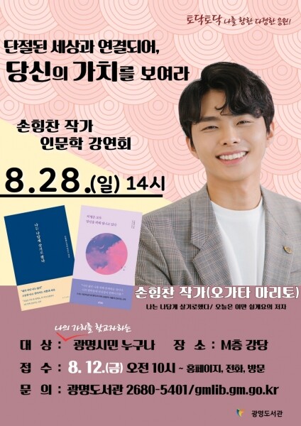 광명도서관 관계자는 “삶의 절망에서 힘들어하는 시민들에게 이번 강연이 따뜻한 위로와 마음의 안정을 찾아줄 수 있는 시간이 되어 줄 것으로 기대한다”고 전했다.