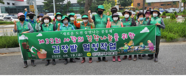 김양금 부녀회장은 “이른 아침부터 밭에서 작업할 생각을 하니 다소 힘들었으나 도움을 받고 행복해할 주민들과 힘들어도 모여 함께해준 회원들 덕에 사명감과 용기를 얻었다”며 “우리가 조금씩 노력하는 부분들이 필요한 사람들에게 전달돼 주민들 모두가 행복한 양서면이 됐으면 좋겠다”고 말했다.