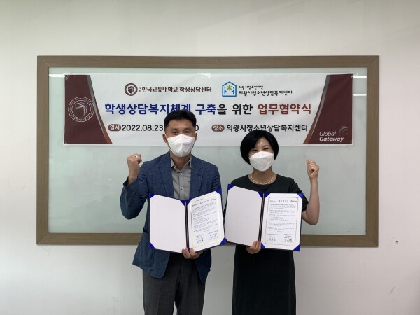 이번 협약을 통해 의왕시청소년상담복지센터와 국립한국교통대학교의 상호 인적자원을 바탕으로 후기청소년들의 심리적 지원을 약속했다.