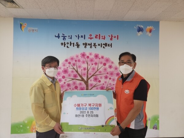 정보규 하안1동 주민자치회 회장은 “이번 기록적인 폭우로 침수피해를 입고 힘겨운 일상을 보내고 계시는 지역주민들의 빠른 일상생활 회복을 기원하는 마음에서 주민자치회 위원들과 뜻을 모아 기부를 결심했다”며 “수해를 입은 주민들에게 작지만 따뜻한 위로가 되길 바란다”고 말했다.