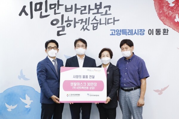 전달받은 약 4,500만원 상당의 덴탈마스크는 고양시사회복지협의회를 통해 관내 사회복지 시설 및 코로나19로 어려움을 겪는 소상공인에게 전달될 예정이다.