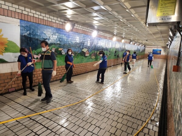 이번 목감 지하보도 환경정화 활동은 목감동 바르게살기위원회가 정기적으로 정화 활동을 펼치는 구 목감사거리 지하보도에서 진행됐으며 쓰레기 줍기 및 물청소와 더불어 코로나19 방역활동도 꼼꼼히 실시했다.