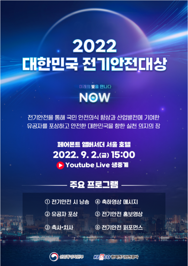 ‘대한민국 전기안전대상’은, 전기재해 예방과 전기안전에 기여한 유공자를 포상하고 안전문화 확산과 실천을 다짐하는 전기안전 분야 최대의 행사로써, 이날 행사에는 국회 산업통상자원중소벤처기업위원회 윤관석 위원장, 김한정 의원, 양향자 의원, 홍정민 의원, 산업부 박일준 차관 등 각계 인사와 전기업계 종사자, 유공자와 가족 등 200여명이 함께 했다.