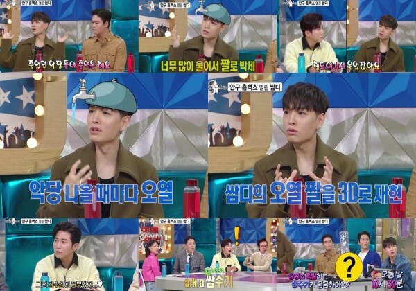 이날 쌈디는 수도꼭지처럼 눈물을 펑펑 흘렸던 ‘오열짤’ 때문에 기괴한 발명품이 탄생했다고 말해 이목을 집중시켰다.