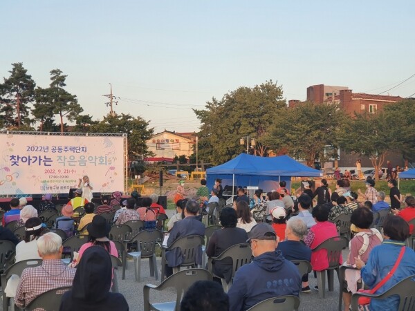 공동주택 단지 찾아가는 작은 음악회는 공동주택 커뮤니티 활성화와 주민 간 소통의 기회를 제공하기 위한 것으로 올해는 코로나19로 인한 사회적 거리두기가 완화돼 소규모 공동주택 단지에서 개최했다.