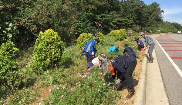 양도면 이장단, 가을맞이 하우고개 가로화단 제초작업 실시